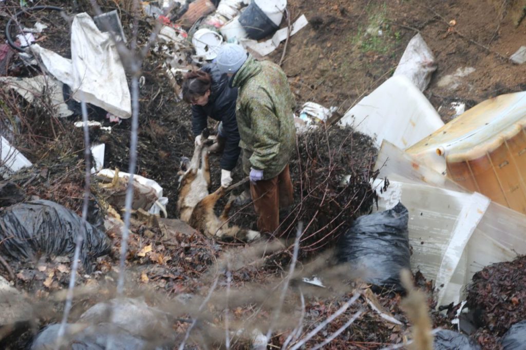 Трупы собак, найденны в овраге возле приюта компании "Фауна+". Фото издания "Фонарь".