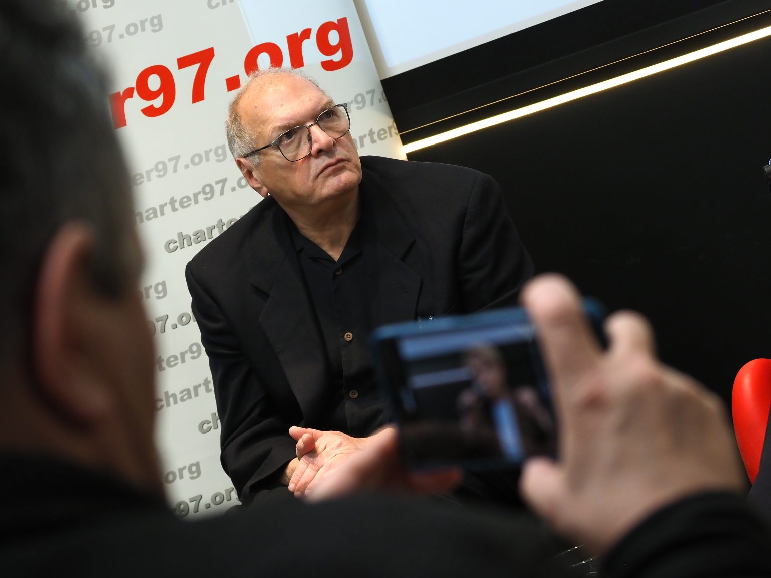 Naszą krótką rozmowę z Felchtinskim planowałem rozpocząć od tematów aktualnych dla rosyjskiej emigracji politycznej – utworzenia platformy przy PACE oraz konfliktu między RDK a Leonidem Wołkowem. Jednak historyk odmówił rozmowy na te tematy, twierdząc, że zna sytuację dość powierzchownie. Według naukowca nie rozumie on, na co liczą przedstawiciele emigracji politycznej, którzy nadal walczą o popularność wśród rosyjskich wyborców: