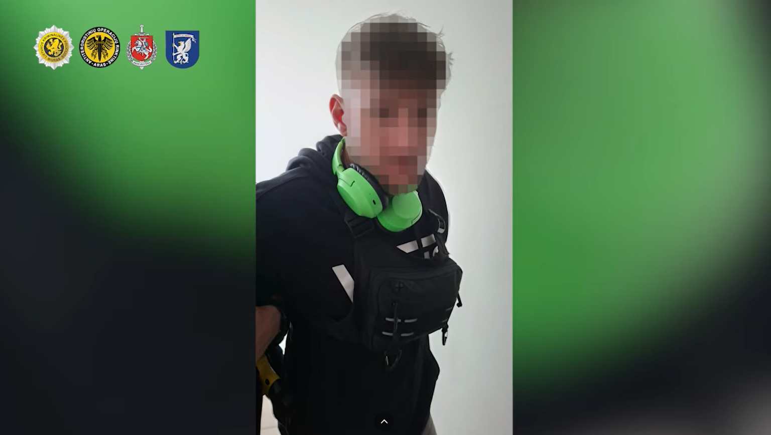Część litewska obejmuje uliczne nagrania zatrzymania jednego z podejrzanych oraz wizerunek innego – z zamazanym obrazem twarzy, ubranego w czarny dres i zielone słuchawki na szyi.