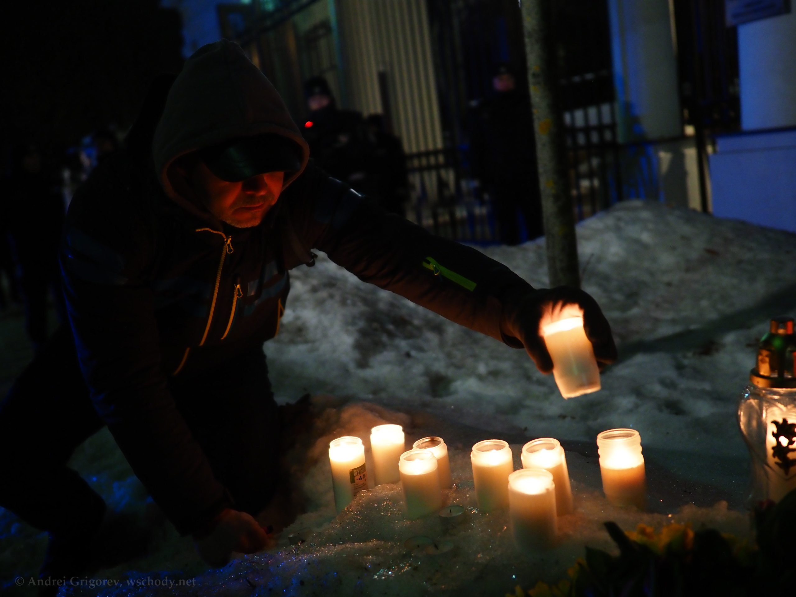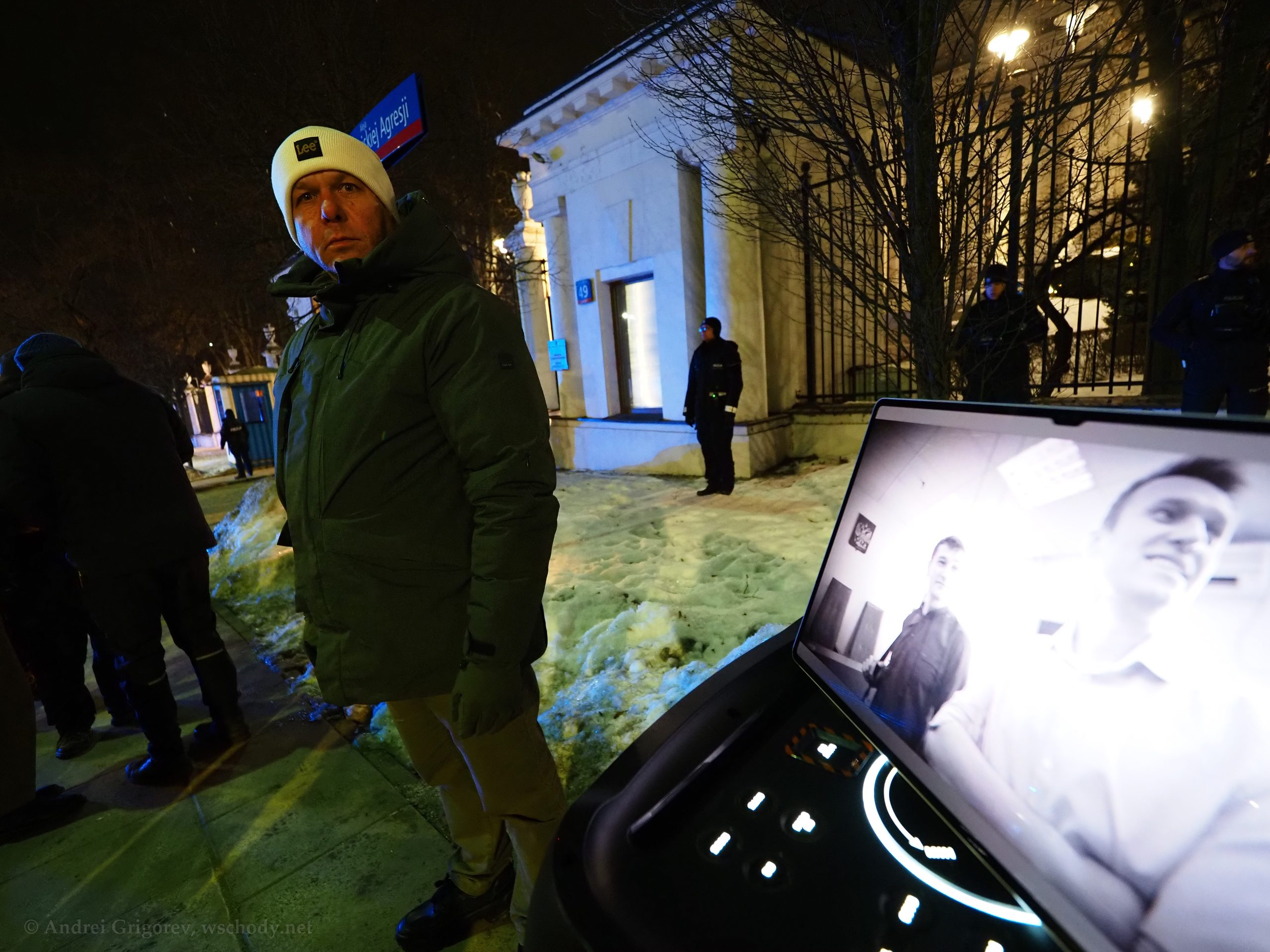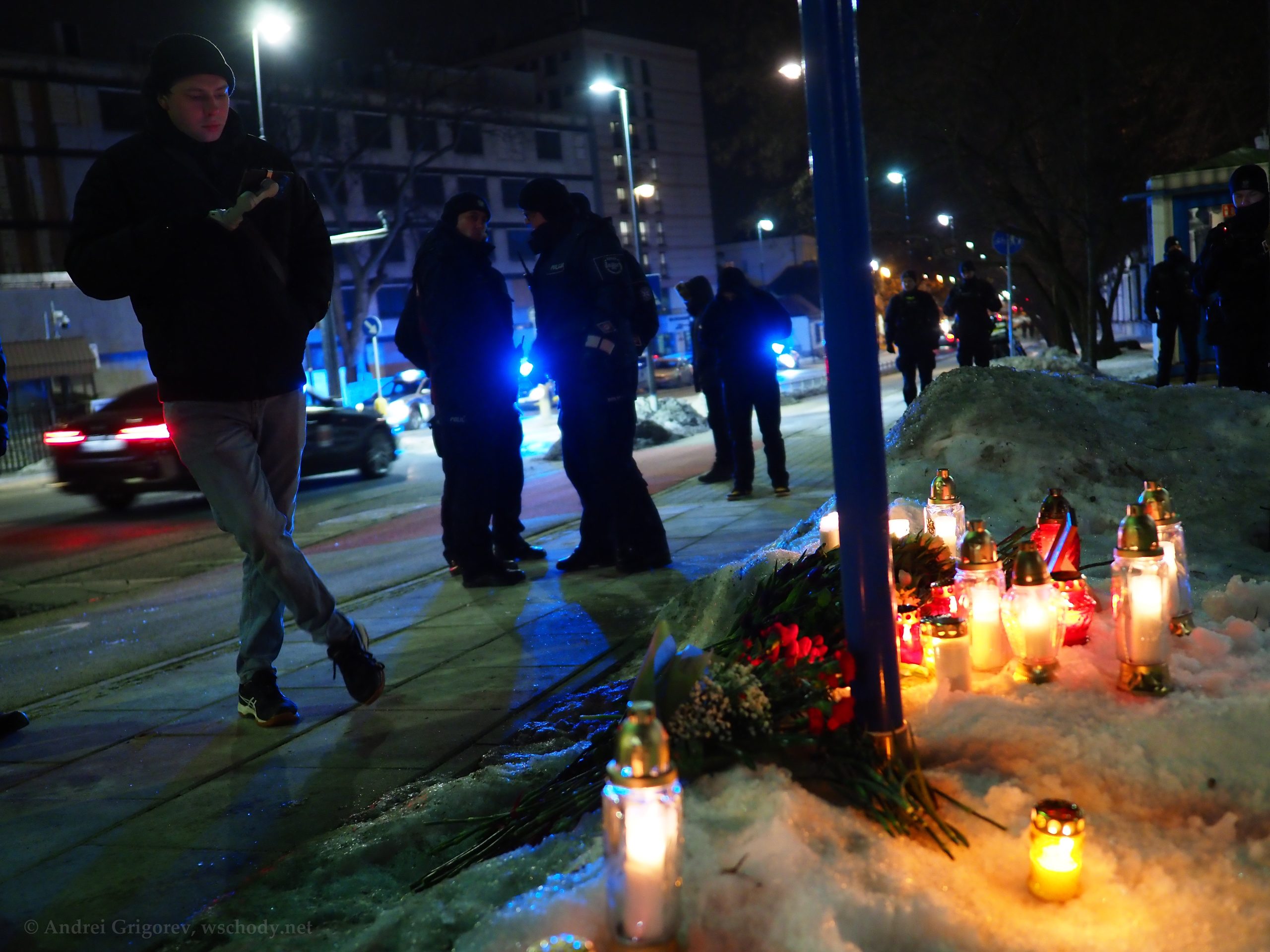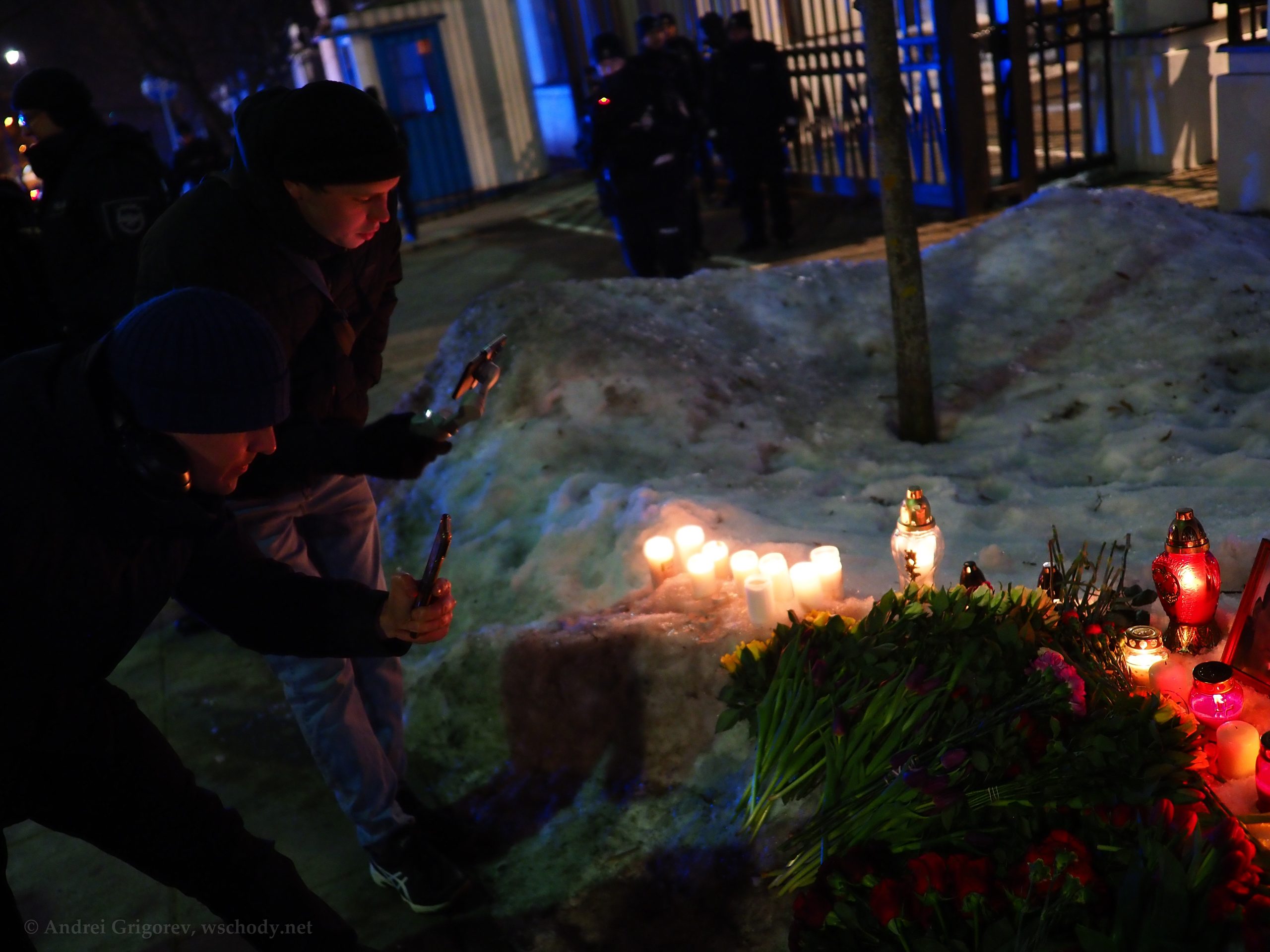 В понедельник, 16 февраля, российские политэмигранты в Варшаве почтили память оппозиционера Алексея Навального, убитого в колонии особого режима «Полярный волк» два года назад. Акция прошла у ворот посольства России — на аллее, которая после начала полномасштабной войны в Украине была переименована в Аллею жертв российской агрессии.